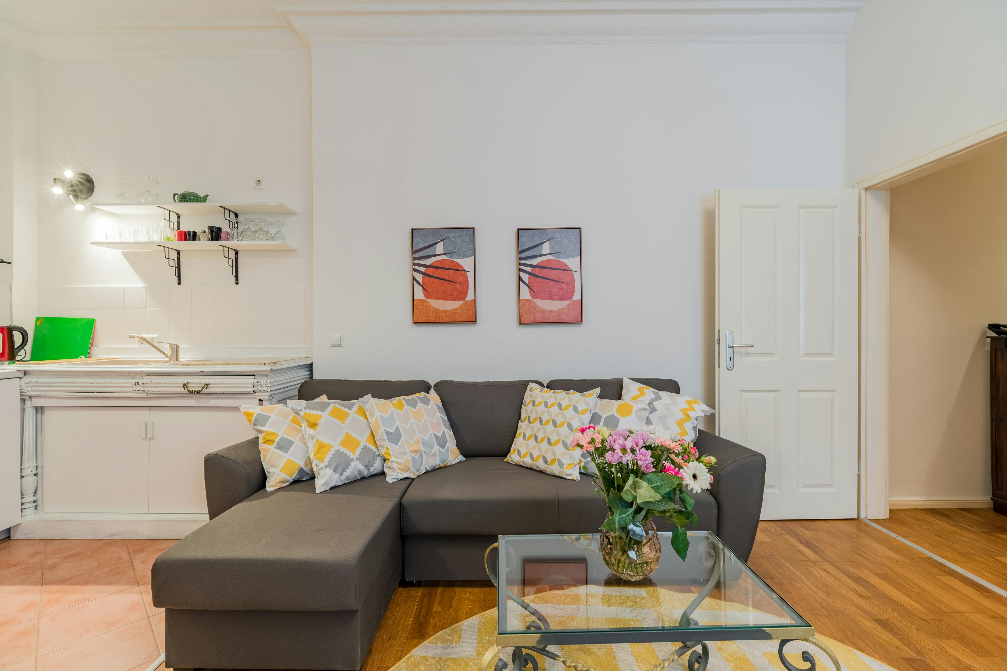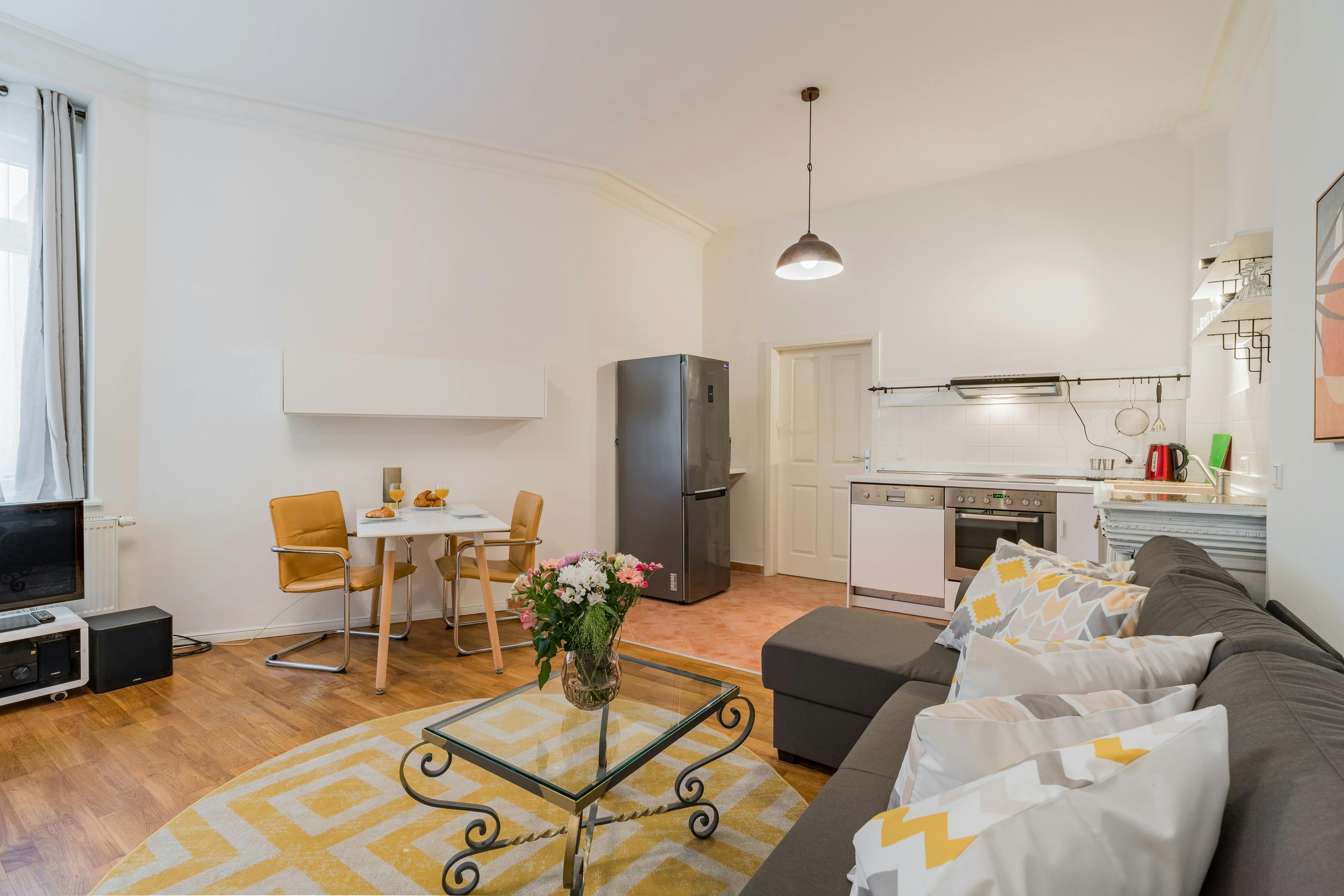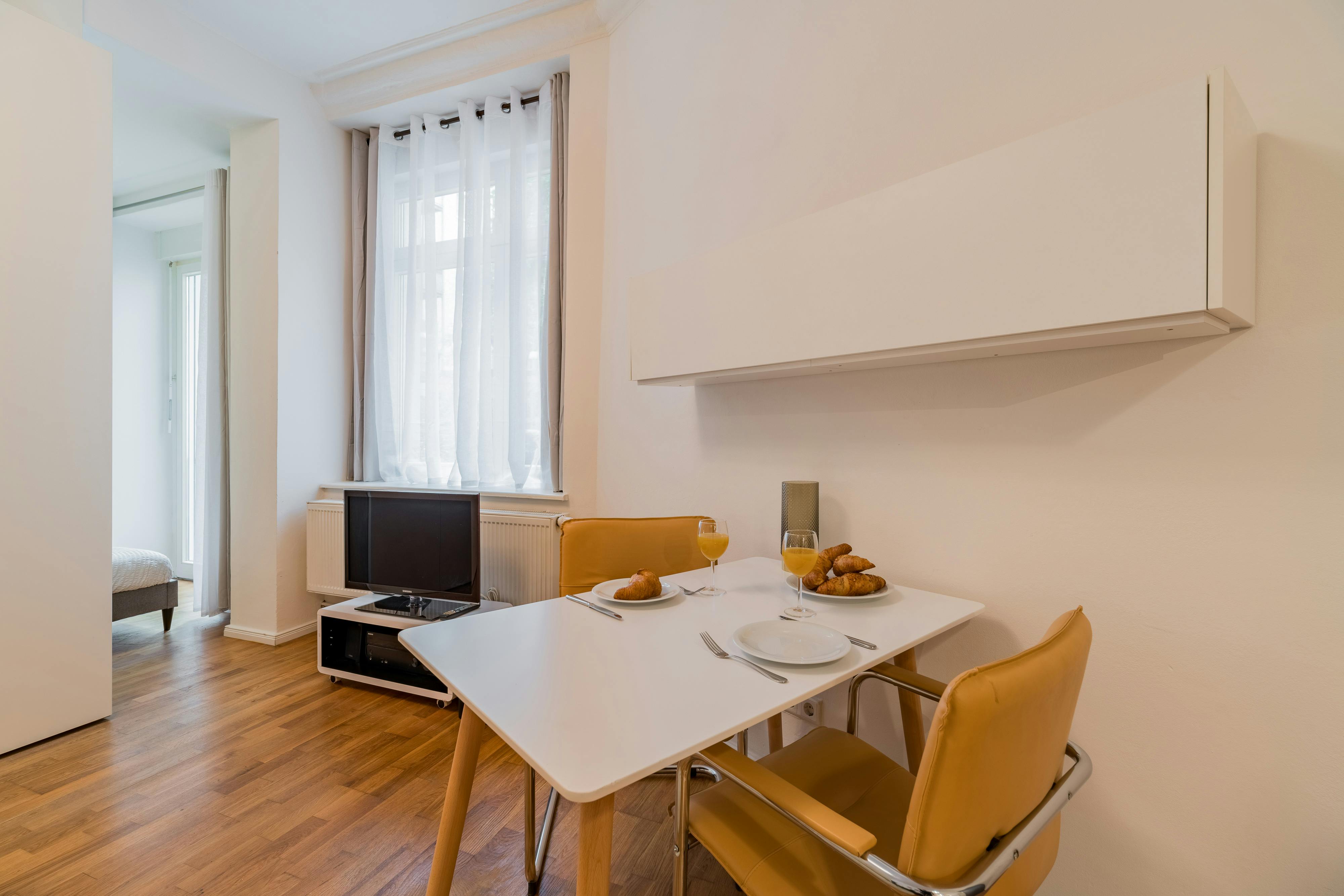 - Fully Furnished Apartment - Registration ("Anmeldung") possible - Name tag installation on door bell + letter box HOUSE The apartment is located in the rear building and on the ground floor of a typical Berlin “Altbau”. APARTMENT This studio apartment is a perfect mix of vintage and new and makes this apartment so homy. The apartment is completely furnished with all necessary appliances. You’ll find a comfortable, large sofa and a TV in the living room. There’s also a small dining table. You will find everything you need to cook in the kitchen. There’s also a dishwasher here. In the bedroom you’ll...