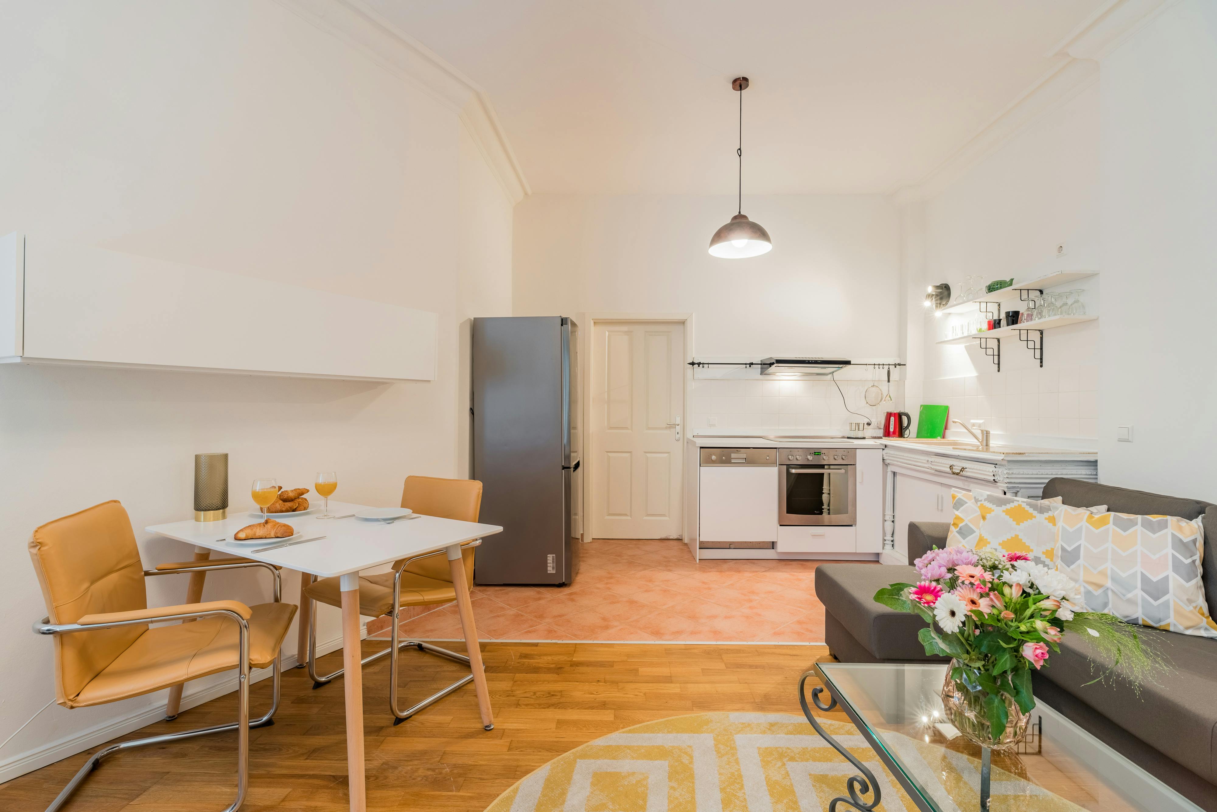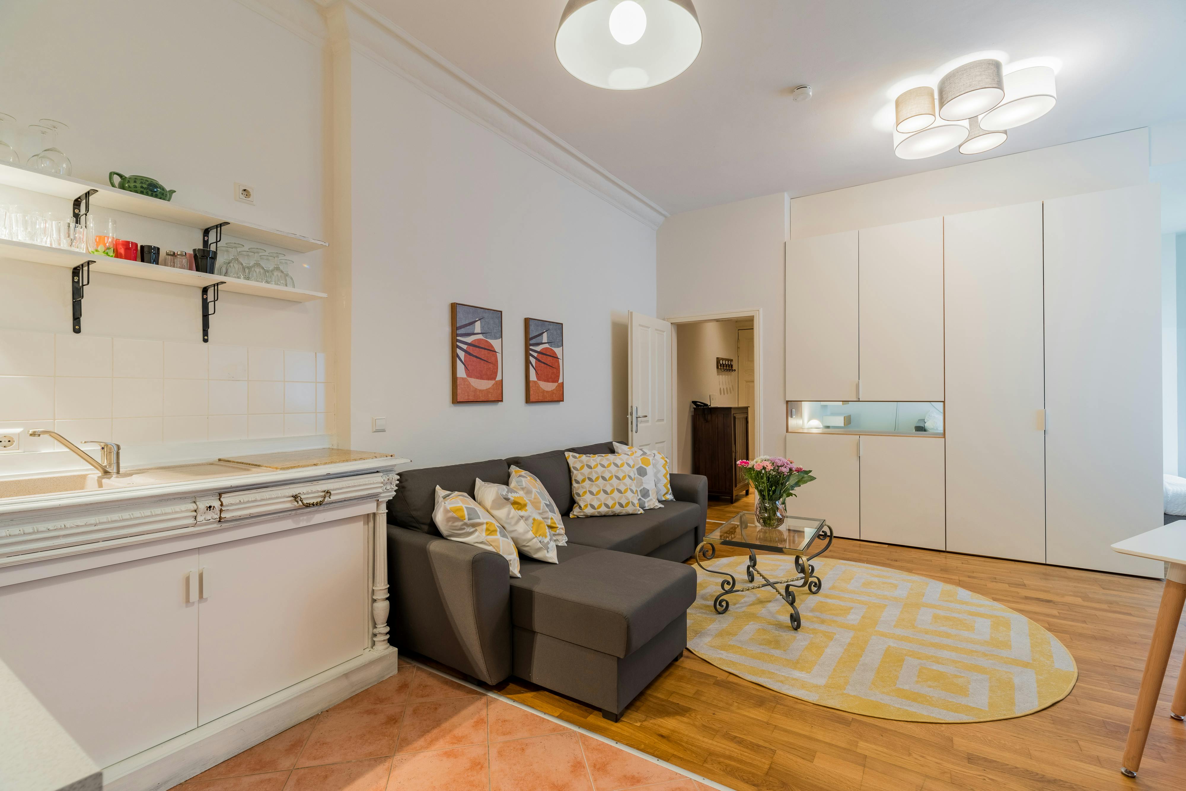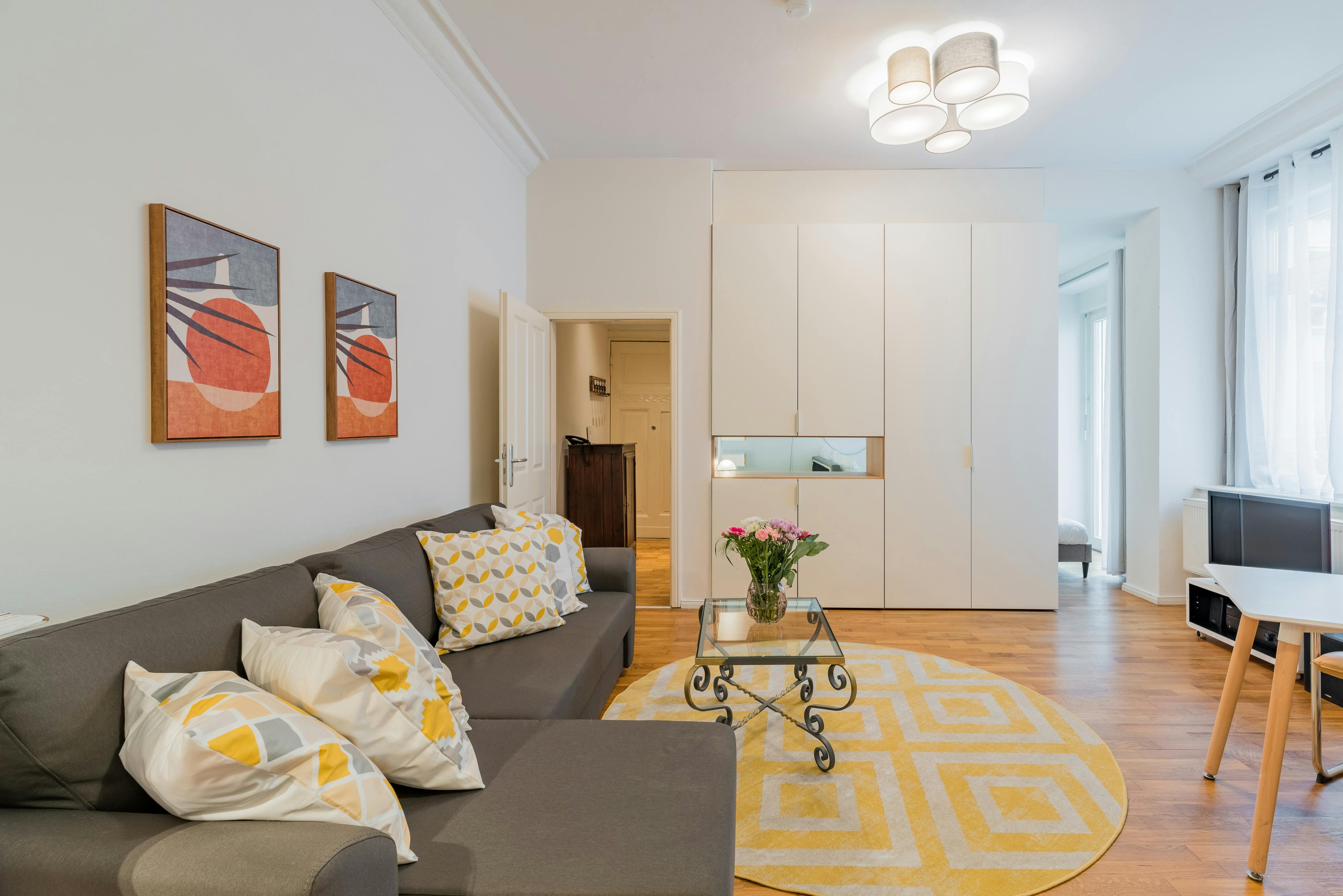 - Fully Furnished Apartment - Registration ("Anmeldung") possible - Name tag installation on door bell + letter box HOUSE The apartment is located in the rear building and on the ground floor of a typical Berlin “Altbau”. APARTMENT This studio apartment is a perfect mix of vintage and new and makes this apartment so homy. The apartment is completely furnished with all necessary appliances. You’ll find a comfortable, large sofa and a TV in the living room. There’s also a small dining table. You will find everything you need to cook in the kitchen. There’s also a dishwasher here. In the bedroom you’ll...