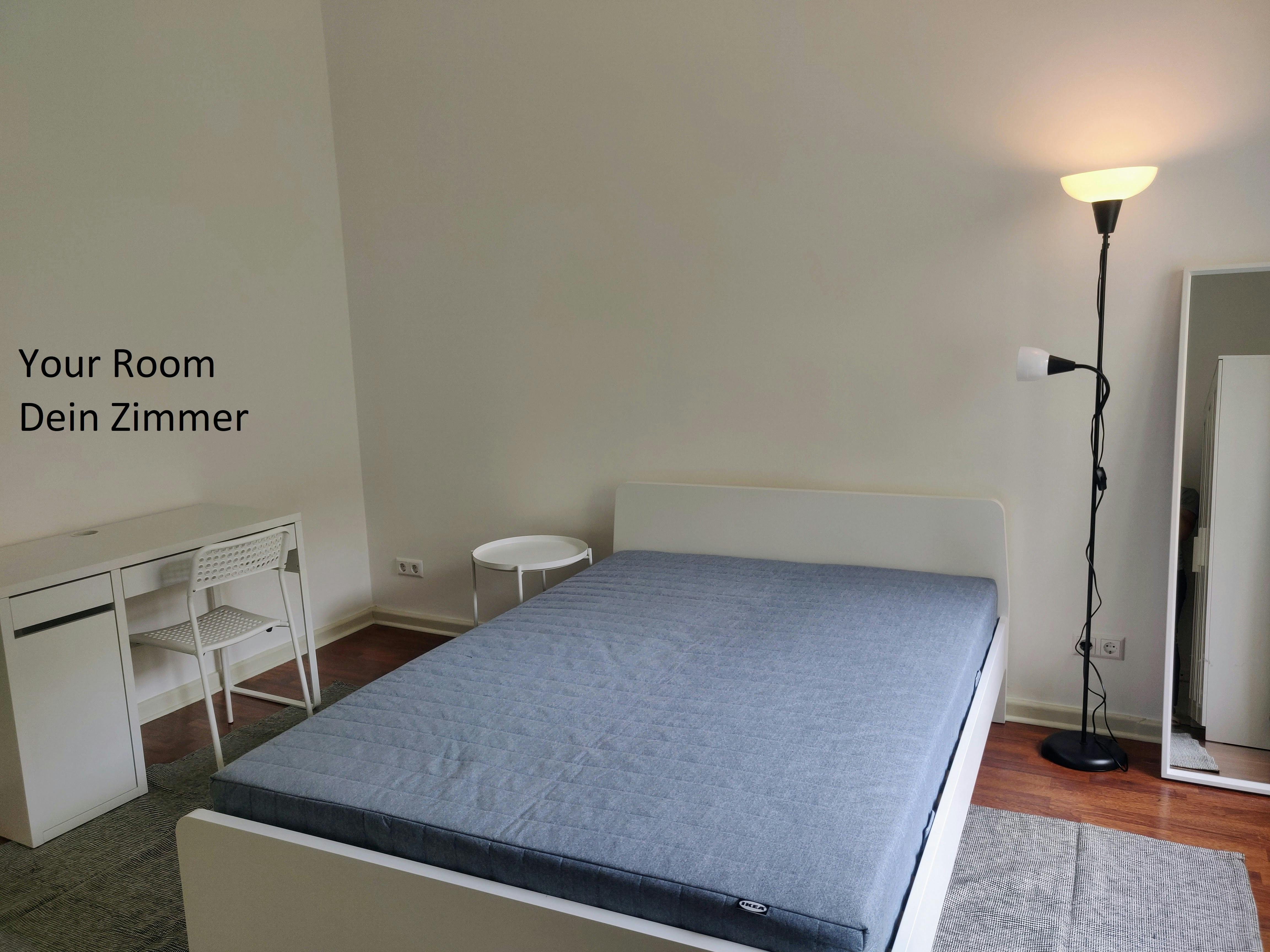 Hi, I live in a 2-bedroom apartment and am looking for a flatmate. The apartment is on the ground floor and has been freshly painted and furnished. Almost everything in the apartment is new. It has 2 rooms. The larger room (18 m2) is available for renting (April 2026 - September 2026). It has a double bed and mattress, a wardrobe, a study table, a chair, a nightstand, a coffee table, lights, mirrors and rugs. You are free to shuffle and modify the arrangement, of course. If any additional furniture is needed from the other rooms, you can do so...