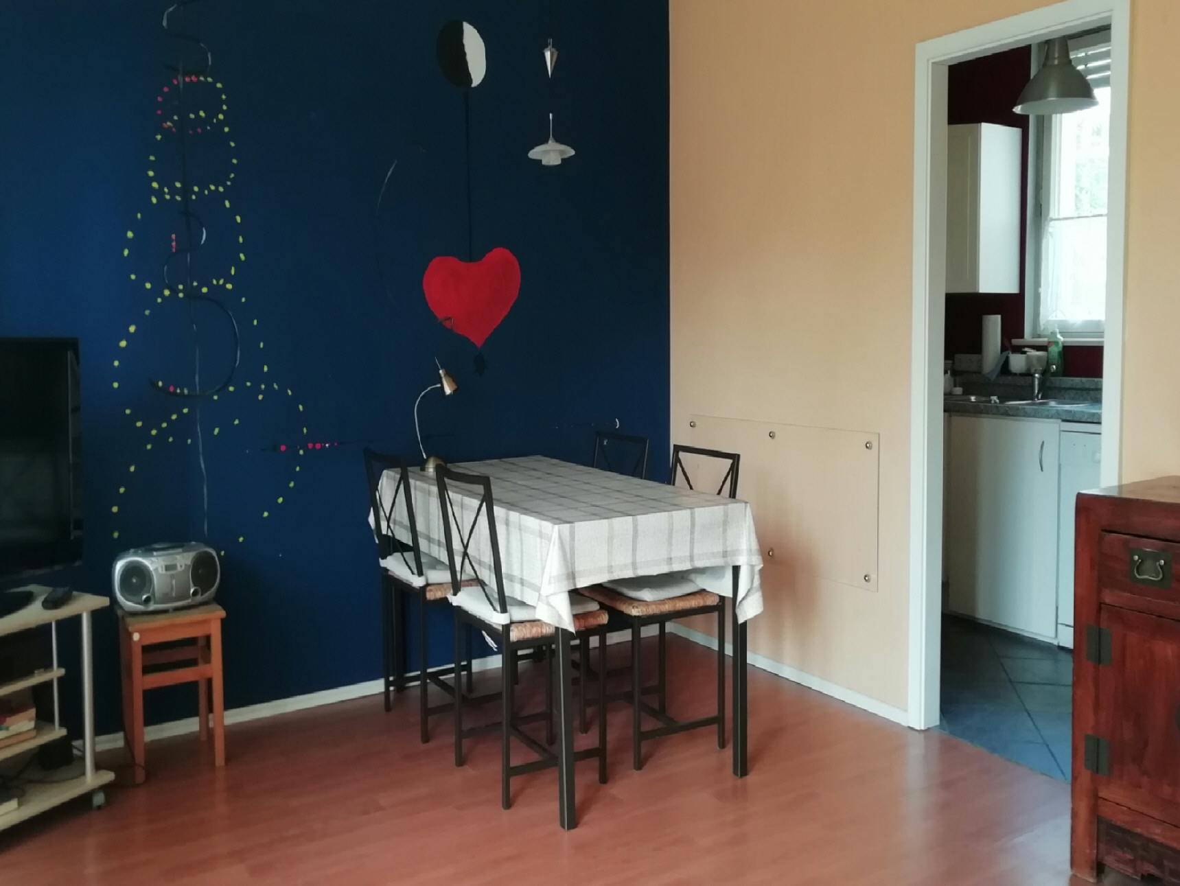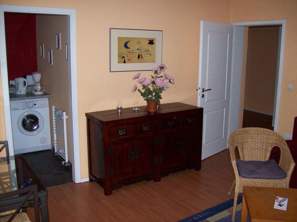 Die Wohnung hat einen großen überdachten Balkon. Internet ist im Preis enthalten, auch alle Nebenkosten, die verbrauchsunabhängig sind und Heizkosten Zusätzlich zu zahlen sind als Kostenvorschuss monatlich ca 70 € für Wasser und Strom. Eine Haftpflichtversicherung ist bei Einzug vorzulegen. Im Nebenhaus ist ein Café-Bäckerei, Lebensmittel und Drogerie sind in weniger als 10 min. zu Fuß erreichbar. Bus 5 min, U-Bahn 10 min.