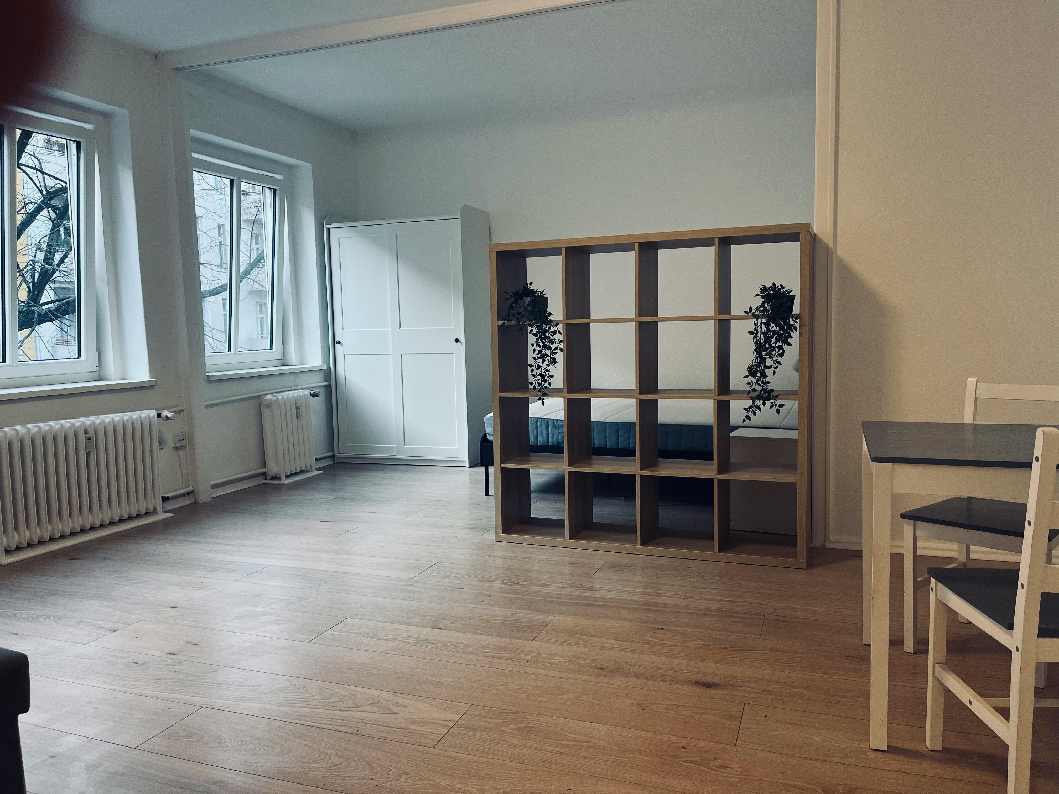 Objektbeschreibung Zur Vermietung steht eine elegante Wohnung im ersten Obergeschoss eines gepflegten Wohngebäudes in der ruhigen Blissstraße im Stadtteil Wilmersdorf. Die Wohnung wird befristet für mindestens ein Jahr und maximal zwei Jahre vermietet und eignet sich ideal für Berufstätige, Studierende oder alle, die eine hochwertige temporäre Wohnlösung in Berlin suchen. Die Wohnung ist vollständig renoviert und überzeugt durch helle, gut geschnittene Räume. Sie besteht aus: • Eingangsflur • separater Küche • Badezimmer mit Fenster • praktischem Abstellraum • großzügigem, sehr hellem Hauptraum, der als Schlaf- und Wohnbereich dient Die Räume bieten Komfort und Funktionalität und schaffen eine moderne, angenehme Wohnatmosphäre. Lage Wilmersdorf zählt zu den beliebtesten Wohngegenden Berlins und zeichnet sich durch baumbestandene Straßen, elegante...