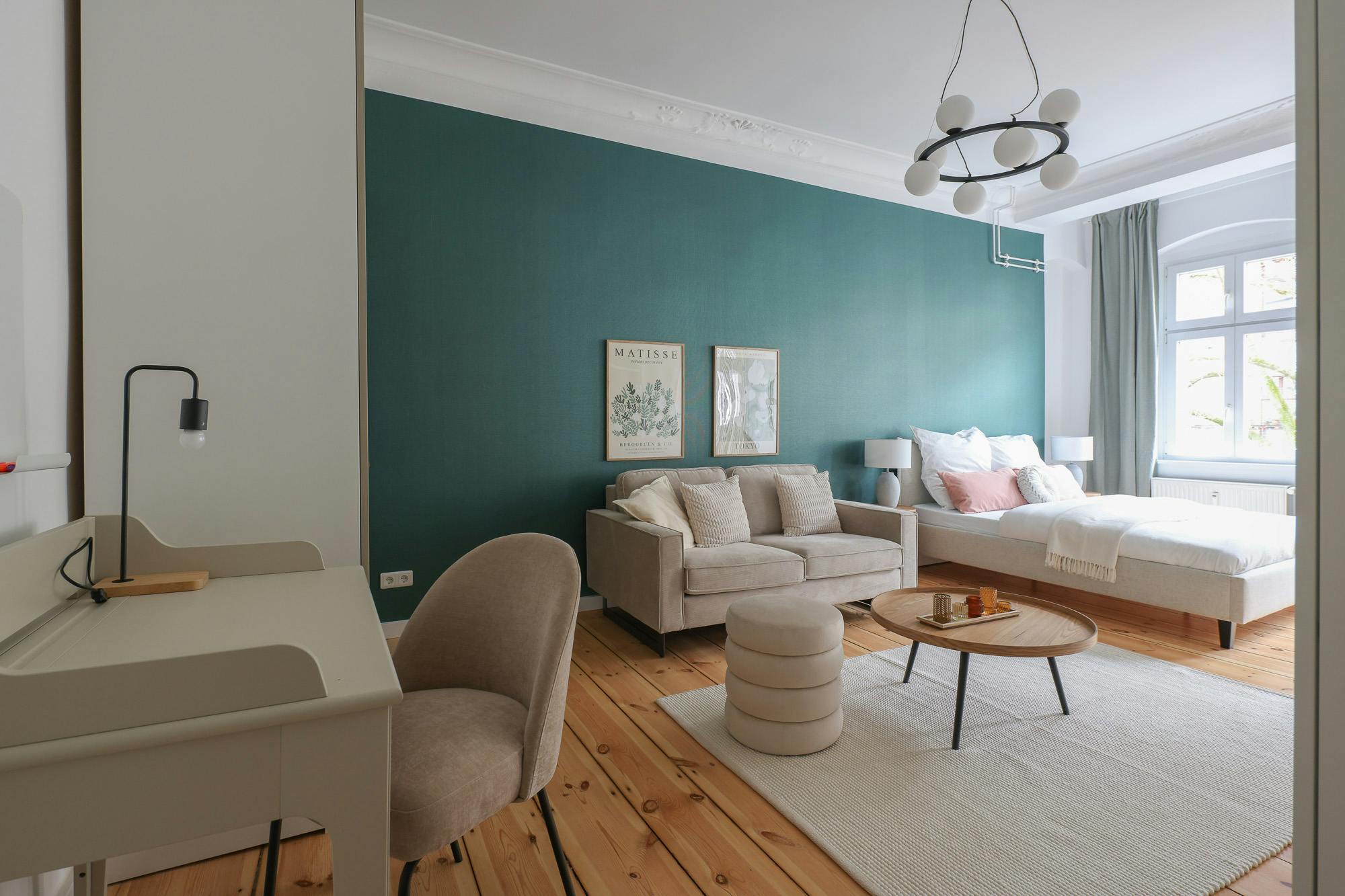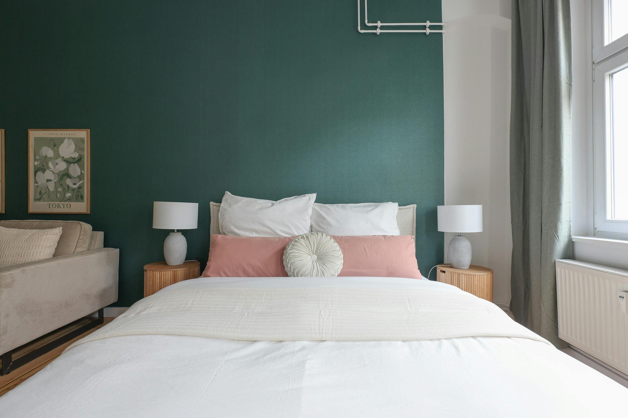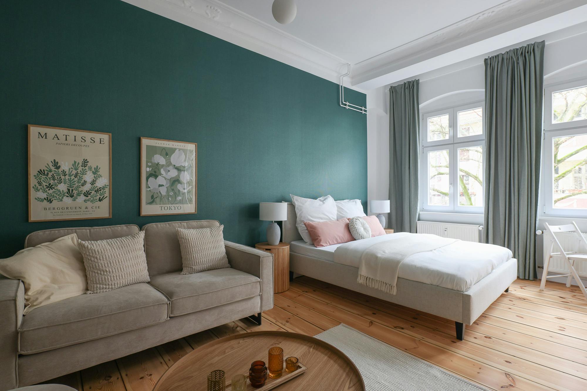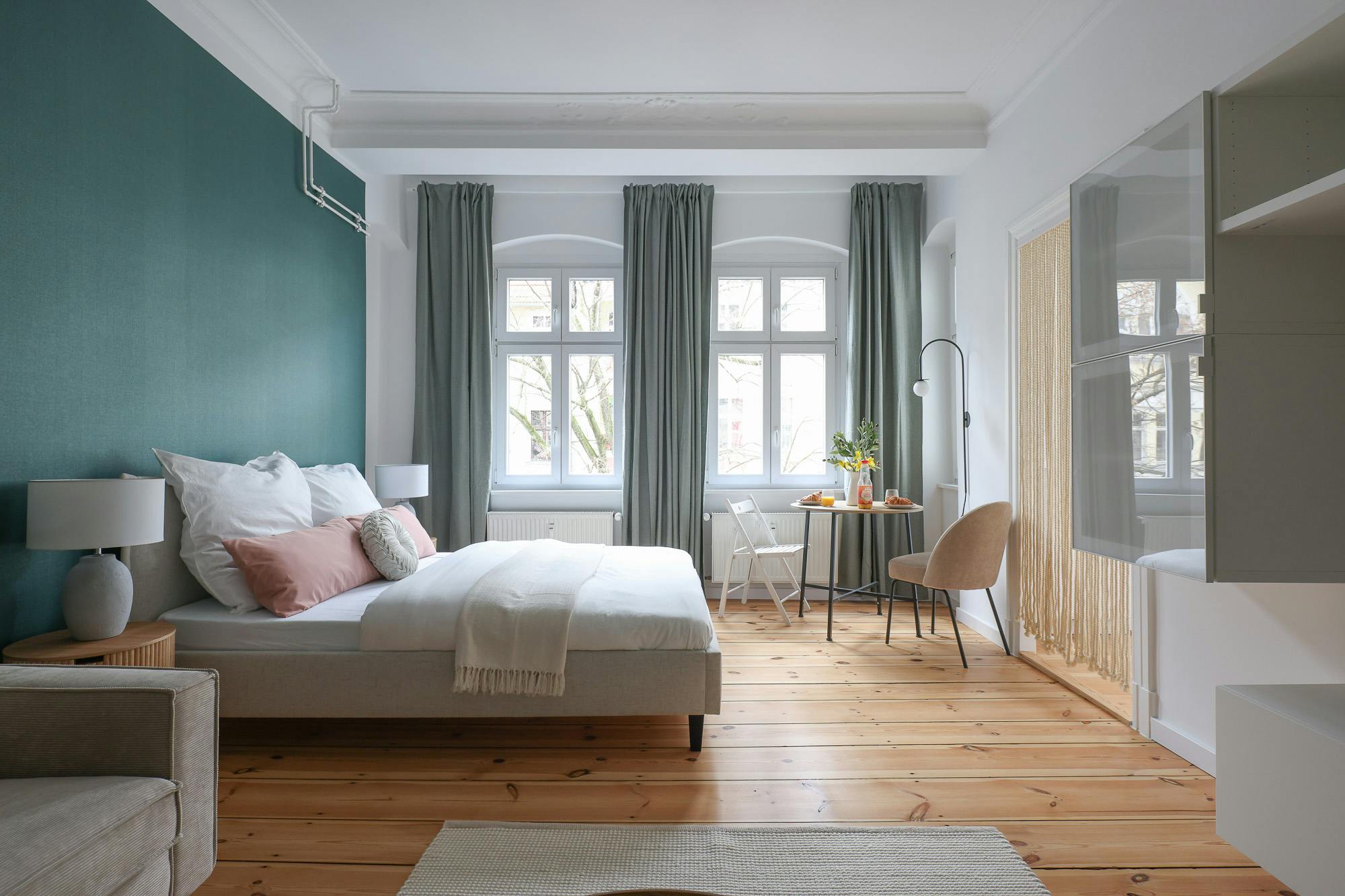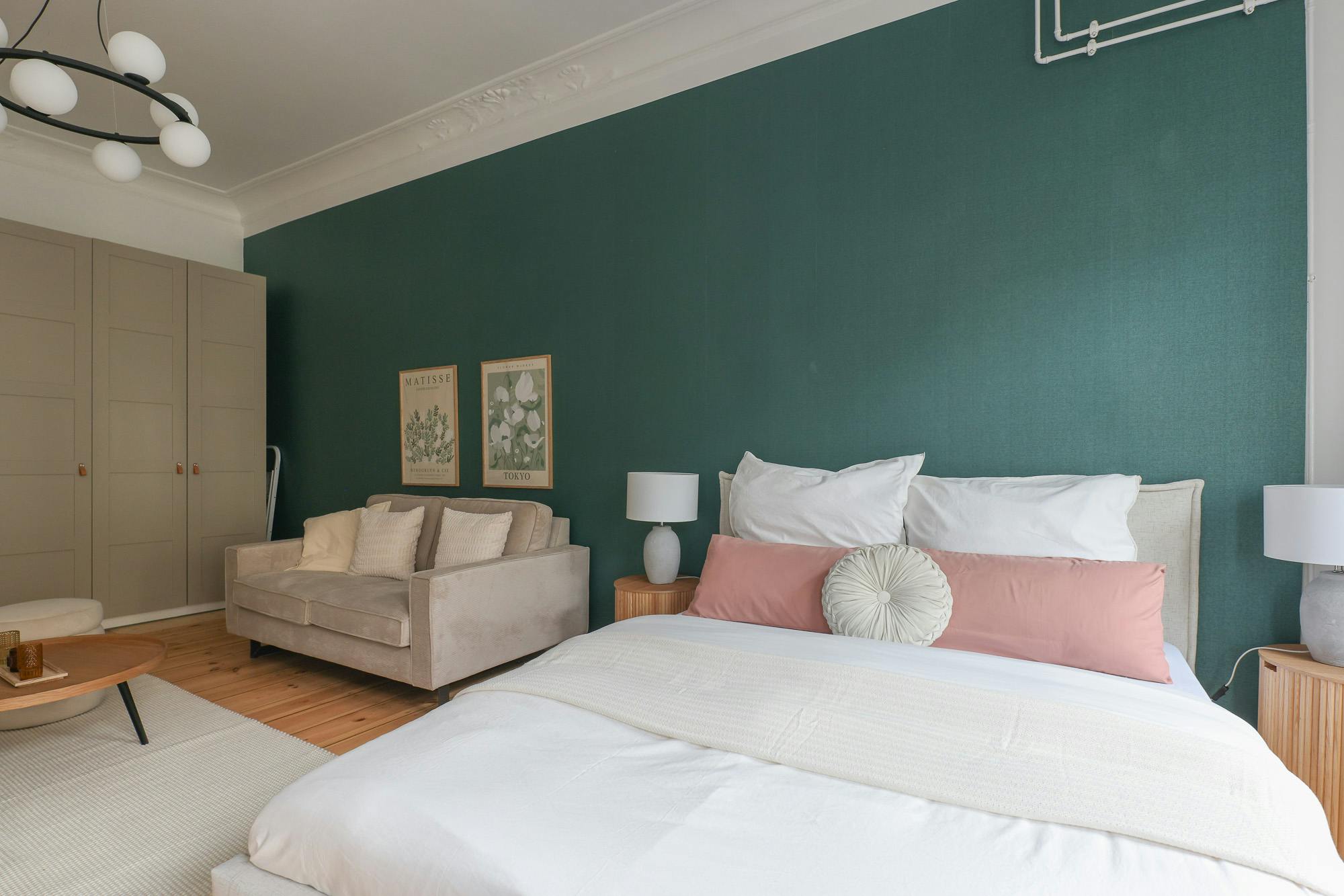 HOUSE This beautiful one bedroom apartment is located on the 3rd floor of a typical Berlin Altbau. APARTMENT You enter this beautiful apartment into a hallway that connects to the bedroom and the bathroom. The kitchen is fully equipped with all necessary utensils that you might need to cook a delicious meal. In the living room there is a dining table that fits two people. You will also find a comfortable sofa and a smart TV in this open living room. There is a cozy queen-sized bed (160×200) and with the wardrobe and the chest of drawers there is enough storage room to...