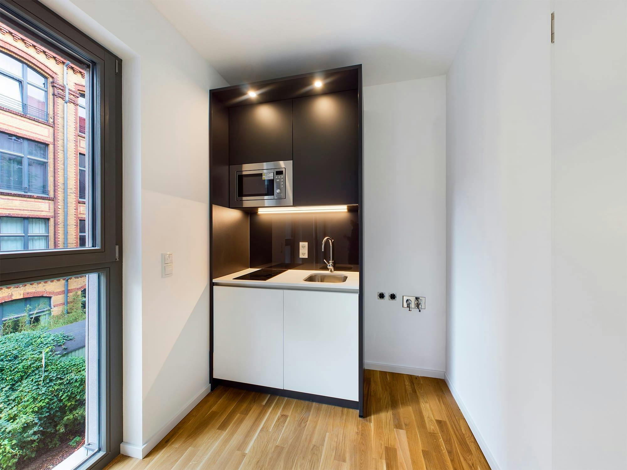Modern living: These innovative concept flats in the intersection of the trend districts Kreuzberg, Friedrichshain and Neukölln in Berlin Alt-Treptow. Modern, minimalist, stylish, functional – and right in the middle of the action. How is the commute from here to other locations? The quiet Kiefholzstraße 22 (30 kmh zone) is the perfect base to explore Berlin. Several bus and train lines in the vicinity take you easily to the main railway station (Hauptbahnhof), Berlin Mitte, Friedrichshain, Neukölln, Kreuzberg, Hackescher Markt, Alexanderplatz, Wrangelkiez, Reuterkiez, Osthafen and Boxhagener Kiez. Life couldn’t be better. In addition, there is a top connection to the new BER...