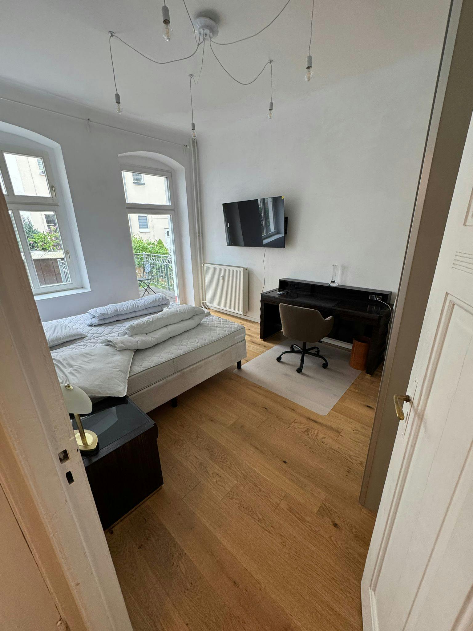 The building is a completely renovated Berlin "Altbau" building and is in the immediate vicinity of public transport and the city motorway. 10 minutes walk to Tempelhofer Feld. All infrastructure for daily needs is in the immediate vicinity. The U6 subway line and several bus lines are within walking distance. The public transport connection is good, i.e. “Friedrichstr:” in 20 minutes, “BergmanKiez” in 10 minutes or City West with the M46. There are several parks, green spaces, and playgrounds nearby, illustrating the neighborhood's lush character. The apartment is a very bright ground-floor unit with a terrace. The bedroom has a large wardrobe,...