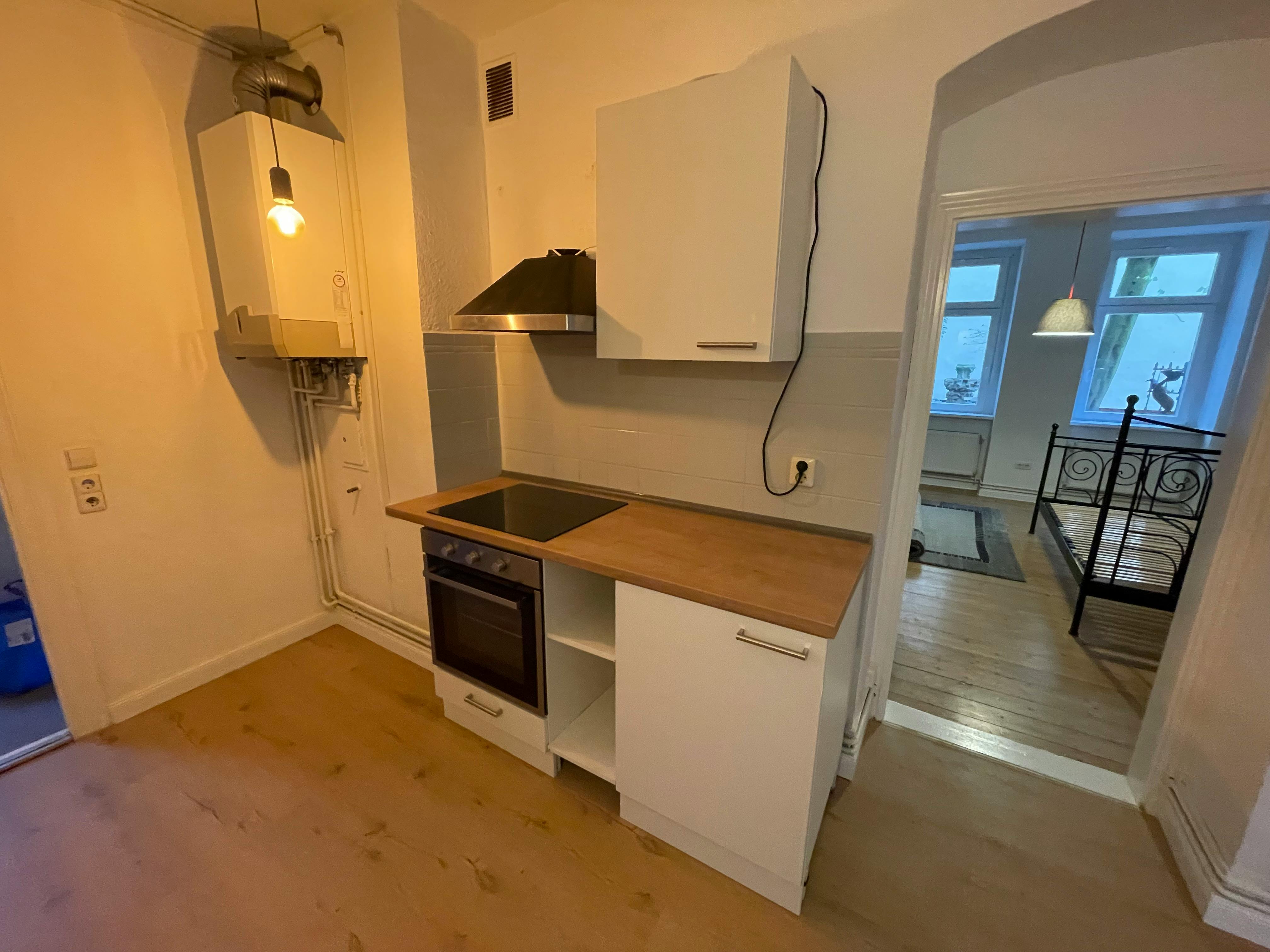Schönes Zimmer im Hinterhaus Parterre eines schöne Gründerzeit Altbaus mit großen Fenstern zum schön gestaltetem 2. Hinterhof in komplett sanierter 4 Zimmer WG Wohnung mit neuer Küche und kompletter Einrichtung, ca. 16qm, möbliert mit 1.40 x 2.00 m Bett, Schreibtisch, Schrank, Dielen, fantastische Lage im Herzen des Ausgehviertel Friedrichshain, das coolste Viertel mit den coolsten Bars, Restaurants, Clubs und internationalen Publikum und Flair. Man geht auf die Straße und ist mittendrin im Leben. Die Wohnung befindet sich in einem wunderschönen Haus im Hinterhaus, Parterre und liegt extrem ruhig. Der erste Hof ist liebevoll gestaltet. Achtung: Erstvermietung nach...