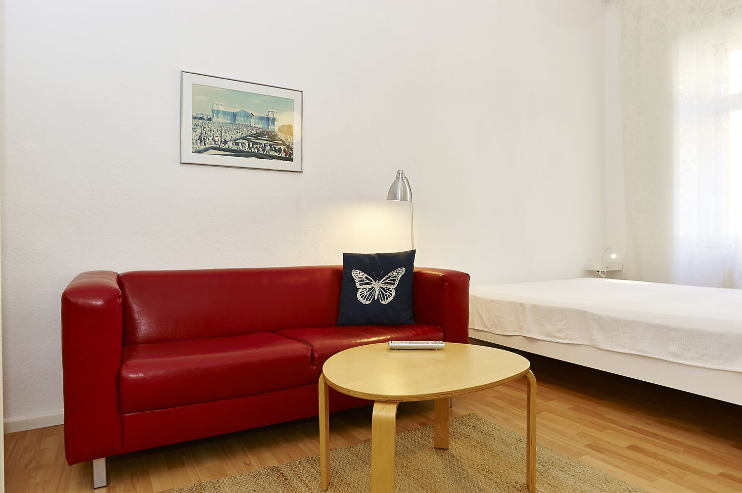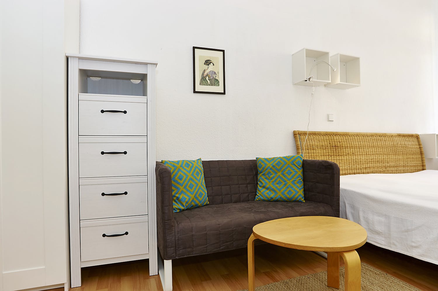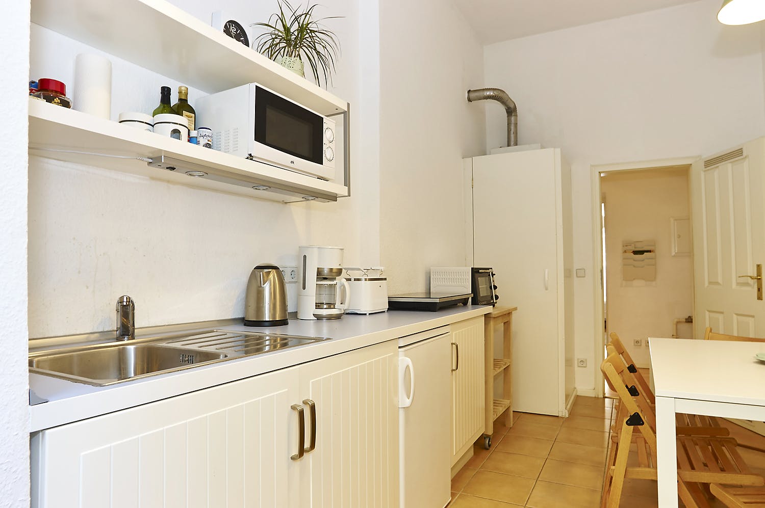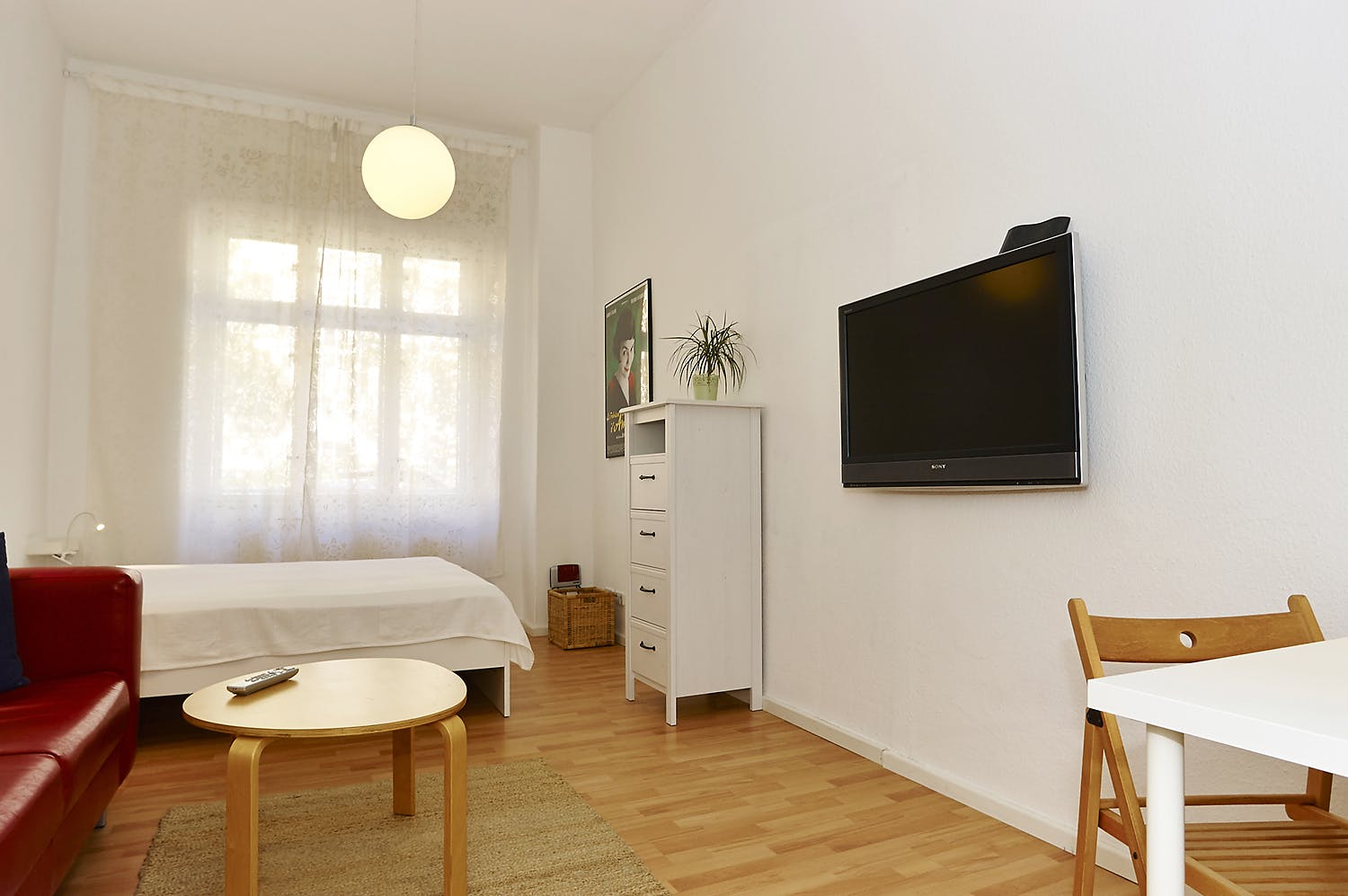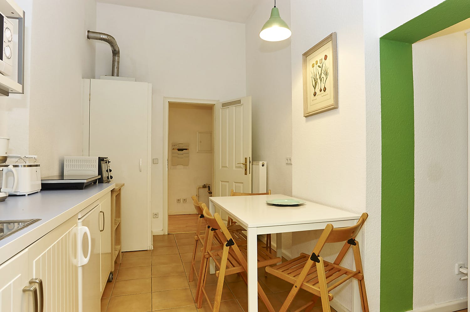 2 Rooms • 58 sqm • Ground floor • Terrasse • Friedrichshain • Bänschstrasse Minimum stay: 8 months • Maximum stay: 12 months • Anmeldung is provided Suitable for: Roommates / 1 - 2 People Details Room 1 Double bed 160X200 Wardrobe Chest of drawers Sofa bed 140x200 Coffee table Carpet Desk Chair Curtains Electric shutters Room 2 Double bed 180X200 Wardrobe Chest of drawers Sofa Coffee table Carpet Desk Chair Curtains Electric shutters Kitchen Fridge Oven Cooking plate Microwave Dining table Chairs Dish drying rack Electric shutter Bathroom Washing machine Shower Bathtub Shelf Towel rack Mirror Hall Mirror Hangers Bank Storage room Shelves Amenities WiFi Laminat floor Gas heating Clothes hangers Vacuum cleaner Plates/glasses/cutlery Pots and pans Cooking equipment Public transport 4 minutes walk to Tram Proskauer Straße station (M10/21) 7 minute walk to U-bahn Samariterstraße station (U5) 7 minute walk to U-bahn Storkower Straße station (S2/S8/S41/S42/S85) Supermarkets 5 minutes walk to REWE 5 minutes walk to LIDL 6 minutes walk to Netto...