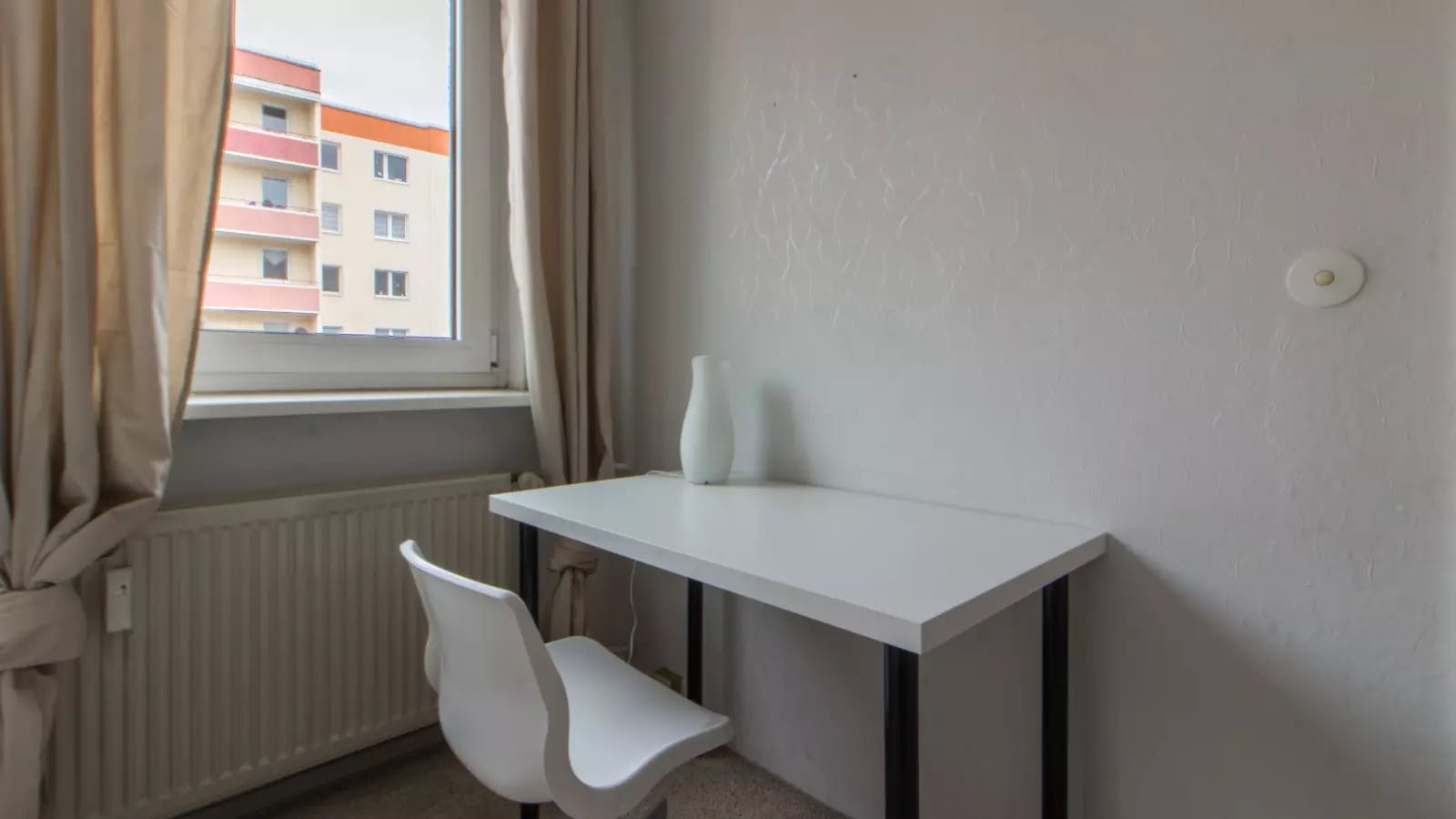 Das Zimmer hat ein Einzelbett mit Nachttisch, einen großen Spiegel-Schrank, Schreibtisch und Stuhl, sowie ein großes Fenster. Das 70m2 Apartment verfügt über eine Küche mit entsprechender Ausstattung und über ein sauberes, gekacheltes Badezimmer, sowie schnelles WiFi (200 Mbits Kabel) und eine Waschmaschine. Ein neues Kissen und eine neue Decke sind ebenfalls vorhanden. The room has a single bed with a nightstand, big wardrobe, desk, chair, and a large window. The 70 square meter apartment offers an equipped kitchen, modern bathroom and central heating and fast WiFi (200 Mbits cable) and a washing machine. A new pillow and blanket are available as...