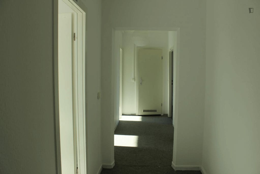 Room 4 Hi guys, this is a fully furnished room in a shared flat. The room has a comfortable bed, a desk with chair and a wardrobe for your clothes. Also the common areas are fully equipped with washing machine, cooking equipment and all you need for your daily living. The monthly rent price is all inclusive (rent + heating + water + Internet + GEZ/german TV license fee).