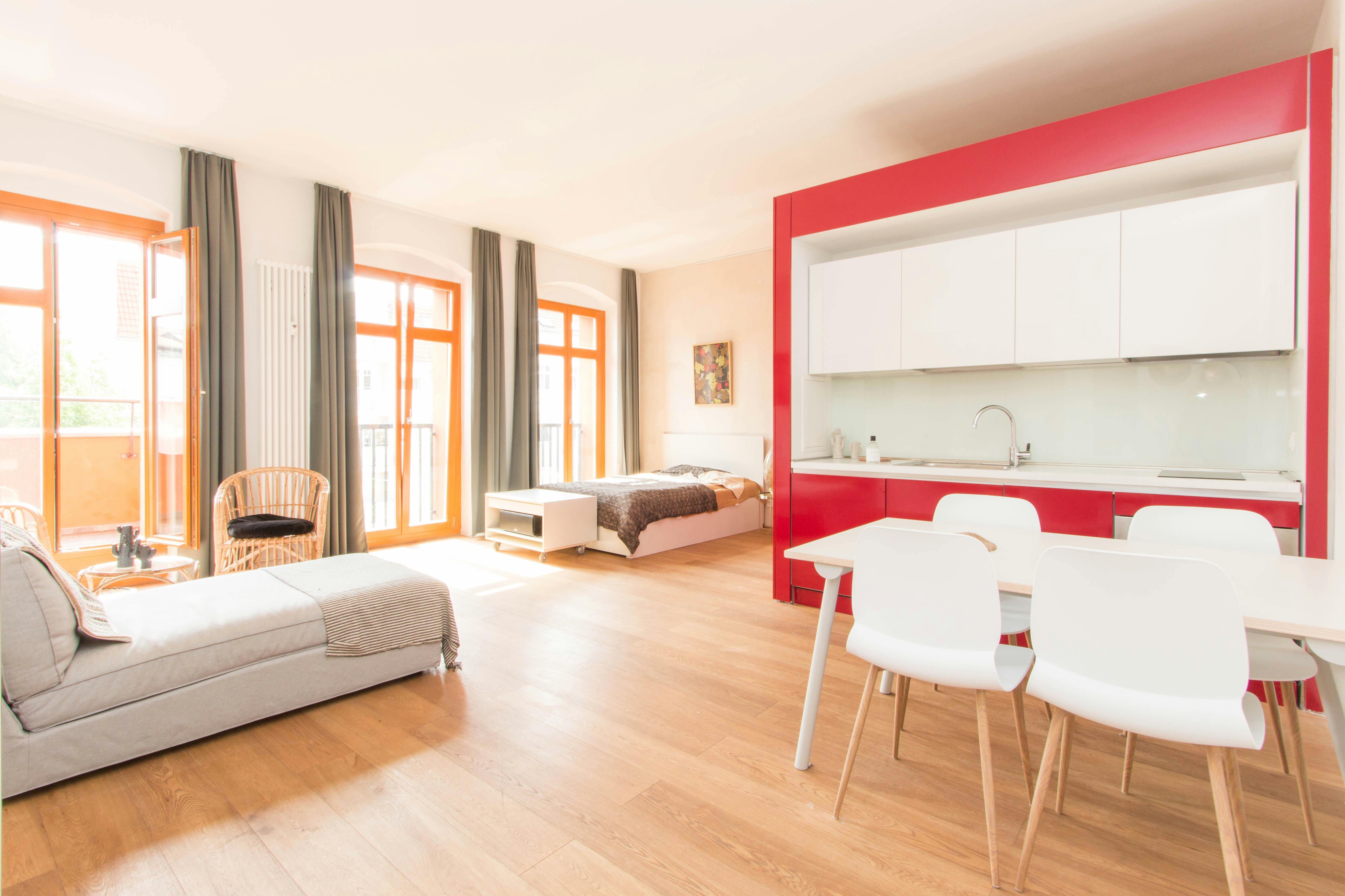 Move into a fully furnished studio inside a renovated 1900s building in vibrant Friedrichshain. All-inclusive rent, smart tech, shared lounges and a leafy courtyard garden — just bring your suitcase. ? What’s inside your studio • Custom design furnishings & smart lighting • Fully equipped kitchen (oven, dishwasher, cookware) • High-speed Wi-Fi, Smart TV, Bluetooth speaker • Queen bed with linen & ample storage • Private bathroom with walk-in shower • Keyless RFID entry & in-unit ambient sound ? Community extras • Shared kitchen-lounge for events & coworking • Courtyard garden + rooftop BBQ (weather-dependent) • Secure bike storage & on-site laundry • Friendly caretaker support, 5 days a week ? Lifestyle A true home base for remote workers, creatives and independent minds —...