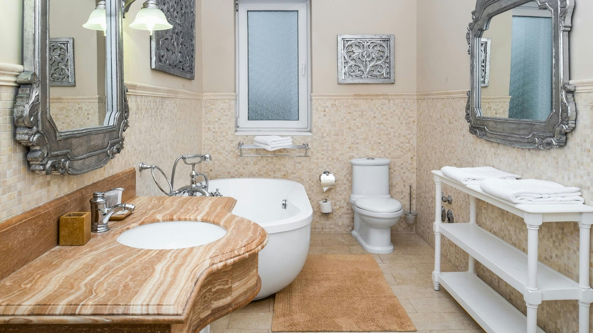 Spacious and elegantly furnished, our superior one bedroom apartments offer you all the conveniences of a luxury apartment, with the privacy of an upper-class apartment for rent, short term or long term, in the center of Berlin. Alongside the comfortable bedroom and the living room, that are both equipped with a TV, you will find a state of the art kitchen with all conveniences to suit your everyday needs, a dining area, and a beautiful marble mosaic master bathroom, as well as a guest washroom and a storage closet.
