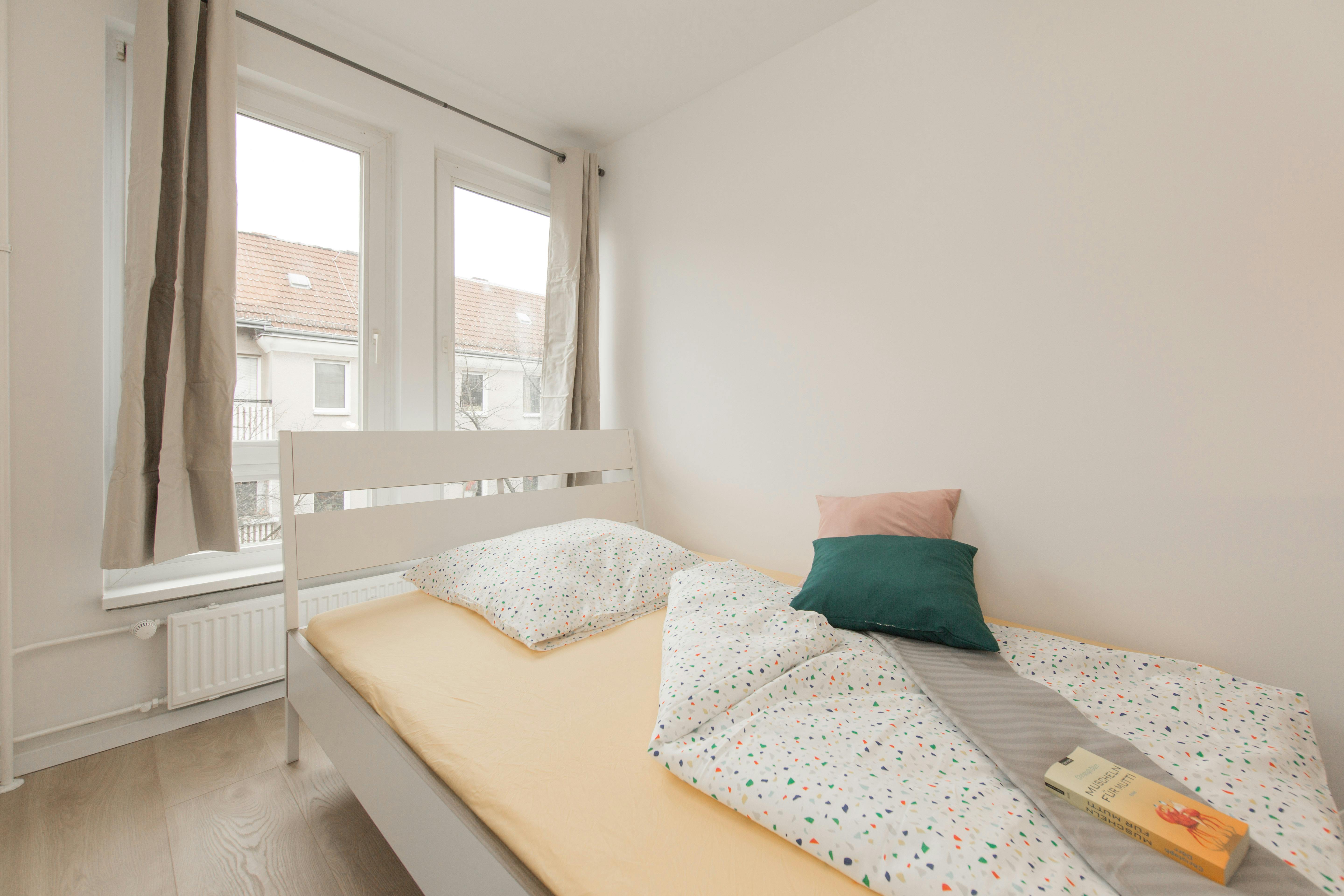 Room 2, 4th Floor Fully furnished with a comfy bed, desk, chair, and wardrobe. Shared areas include a washing machine, kitchen equipment, and all daily essentials. ?Registration (Anmeldung) is possible ?All-inclusive rent (rent, heating, water, internet, GEZ) ?Move-in is only possible on the 1st or 16th of each month. Flexible dates may be possible—let’s discuss :) ?Deposit: €950 (to be paid via bank transfer before move-in)